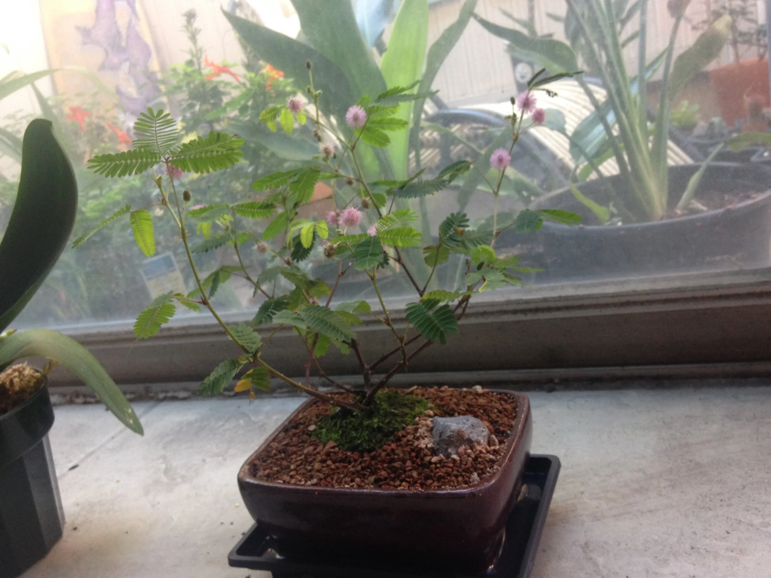 According to Global Healing Center (http://www.globalhealingcenter.com/natural-health/health-benefits-of-the-mimosa-tree/), the bark, flowers and leaves of the tree have long been used both in Traditional Chinese Medicine (TCM) as well as by peoples of Central America for its health benefits. Healing properties included improving mood, aiding in healing of trauma or burns, toothache, skin disorders, colds and cough and aiding in the coagulation of blood, or the cessation of bleeding. It has also been used to boost immunity. I was so excited to see a bonsai version of the tree I couldn't stop myself from ordering one from an Etsy store. The Mimosa adds a beautiful, unique element of beauty to my green-friendly home. I love it!